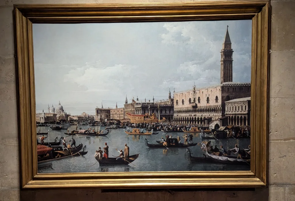 On first reading he is telling her she will conceive, but reading it more carefully he is saying ‘now, you will conceive’. So Duccio is paying very careful attention to the Gospel. By the time Gabriel finishes his sentence, she will have been impregnated by the Holy Dove. Looking at other paintings of the Annunciation the rays from heaven head generally towards the virgin, sometimes to her head, nothing suggesting the ear. In the St Catherine’s Monastery’s Annunciation, above, the ray is going to Mary’s back. Veronese’s ‘The Annunciation’ is similarly going towards Mary’s Back, shoulder, or breast. The Annunciation by the Master of the Judgement of Paris which I showed yesterday has the ray heading to Mary’s lap.