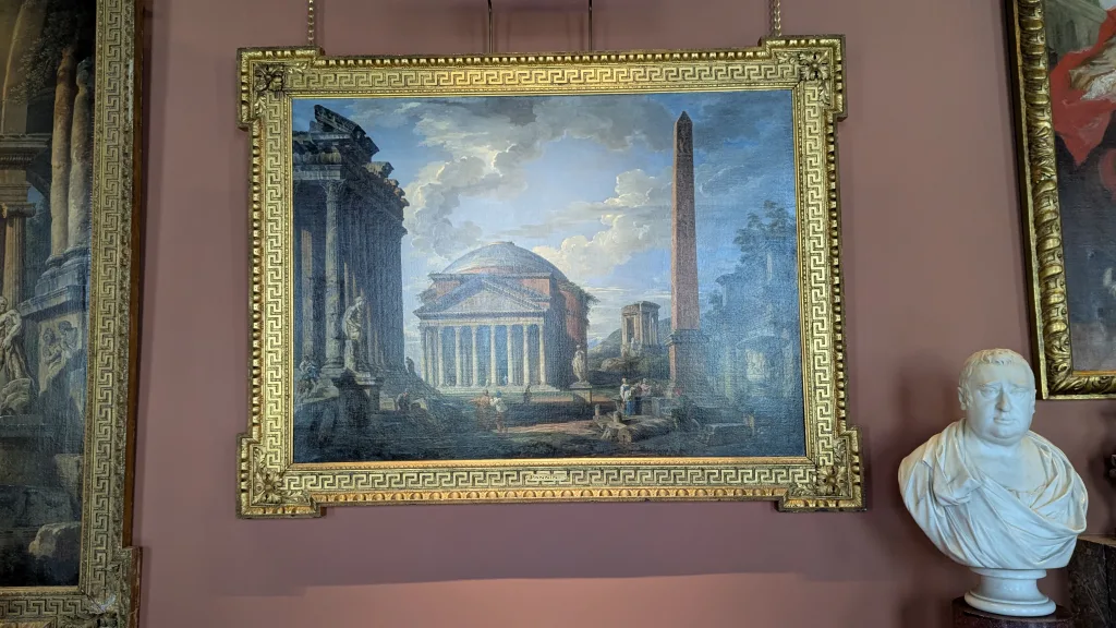 Above the arcading can be seen a small sphere of blue sky from which emanates several ‘rays’ and a tiny Holy Dove. As I told the story, yesterday, the rays are coming from Heaven to her womb which is hinted at by the red of her dress. The National Gallery commentary, which you can read here, suggests ‘The conception takes place at the moment she hears the words, which is why a tiny white dove, representing the Holy Ghost, flies towards her ear‘.
